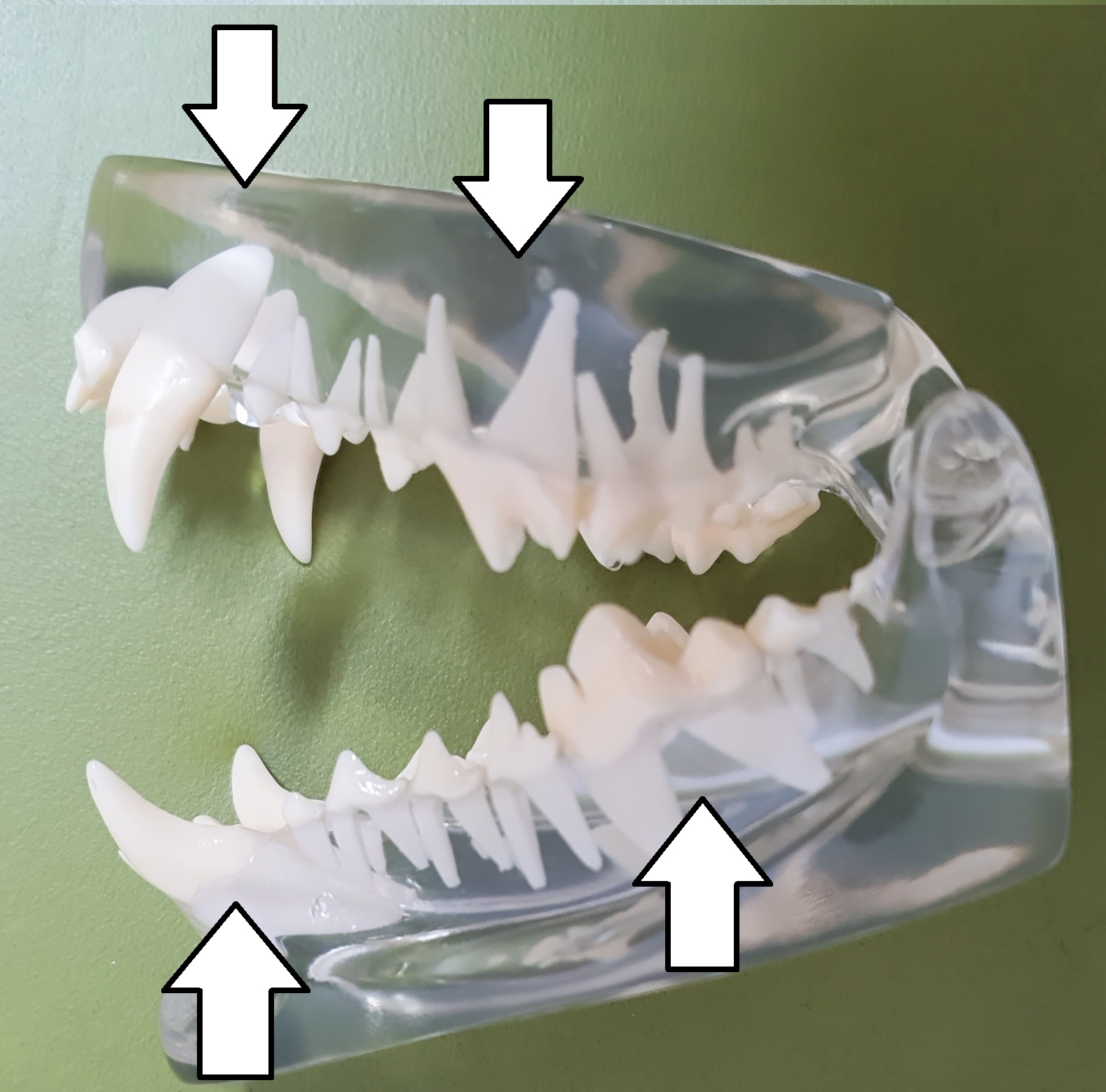 놀라실 수도 있지만 반려동물들이 사람과 살아가는데 주로 쓰는 치아는 송곳니, 위턱의 4번 전구치, 아래턱의 1번 구치입니다. 나머지 치아는 없더라도 살아가는데 불편이 없으며 나머지 치아를 보존치료하는 것은 보호자분이 원하시지 않는 이상 발치를 진행하는 것이 우선되게 됩니다.